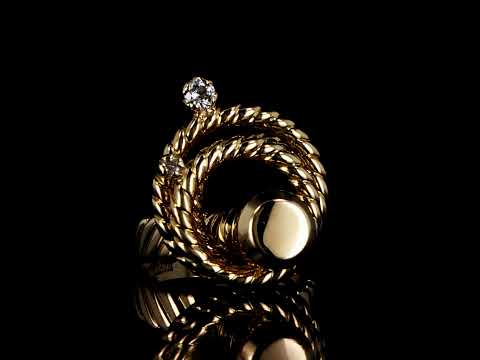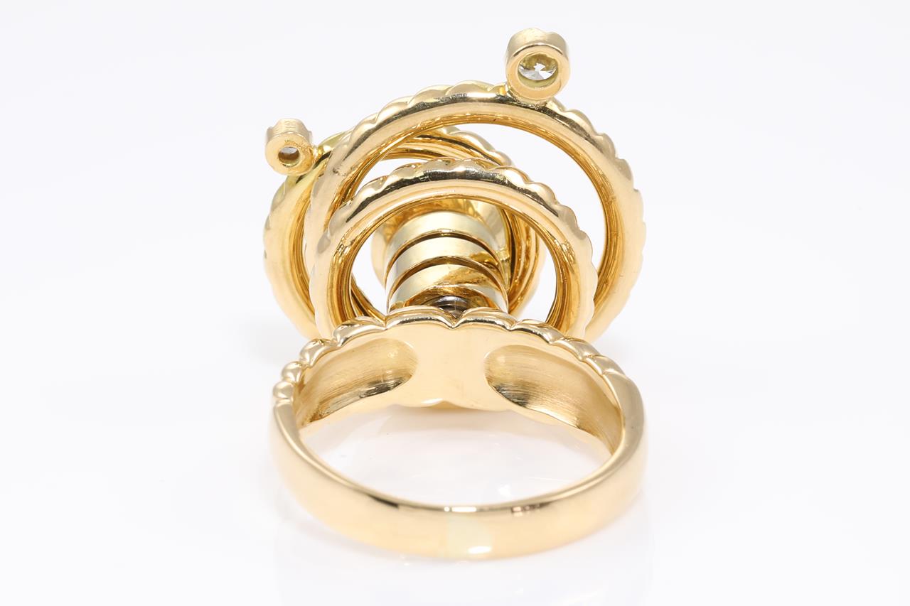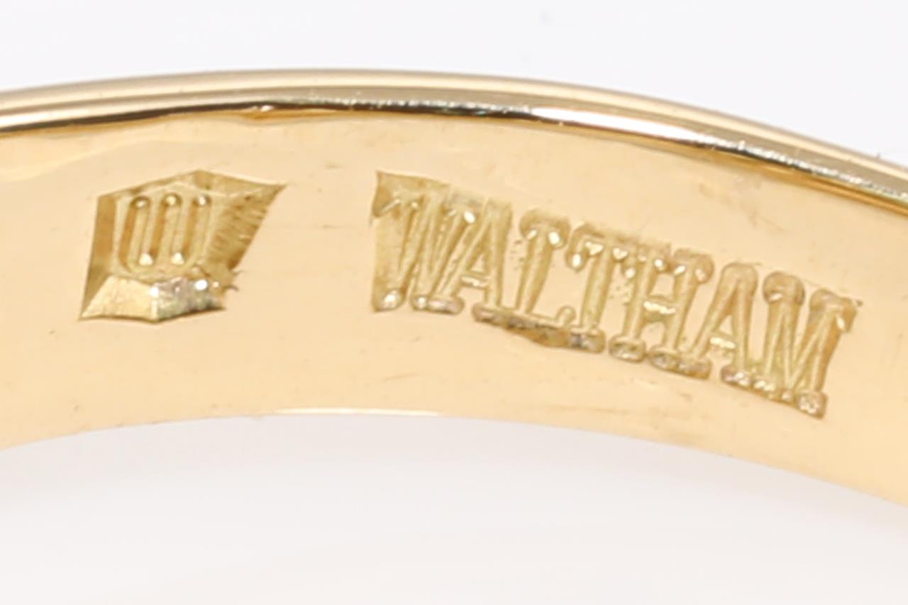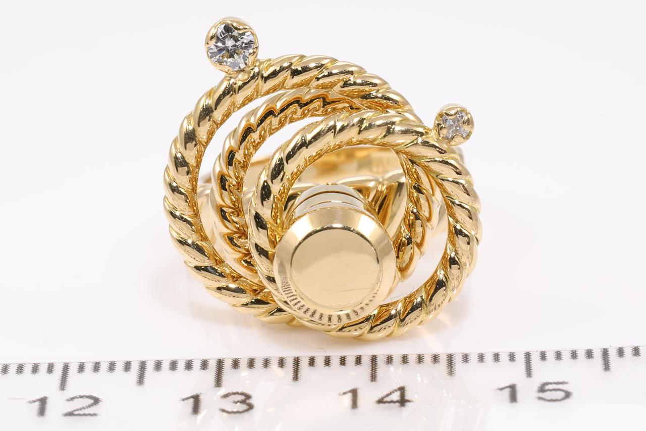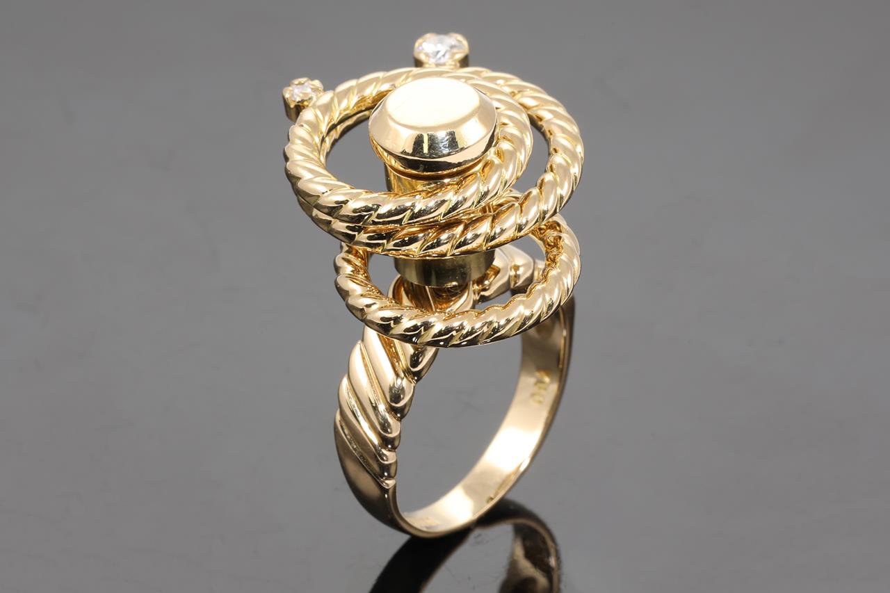 Waltham spinning ring with 2 round Diamonds totalling approximately 0.15cts. 18ct yellow gold. Ring size L - ring reszing is not recommended. Weight: 15.8g. (Pre-owned)