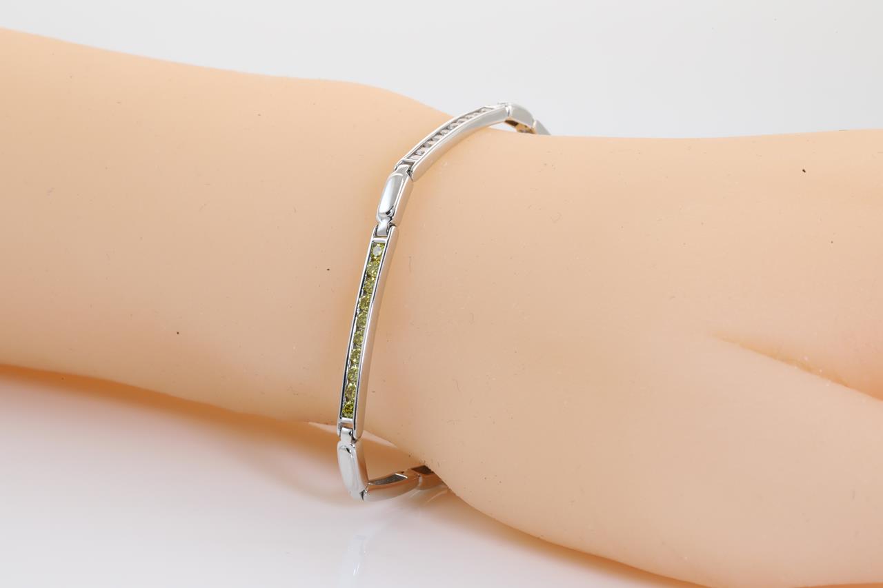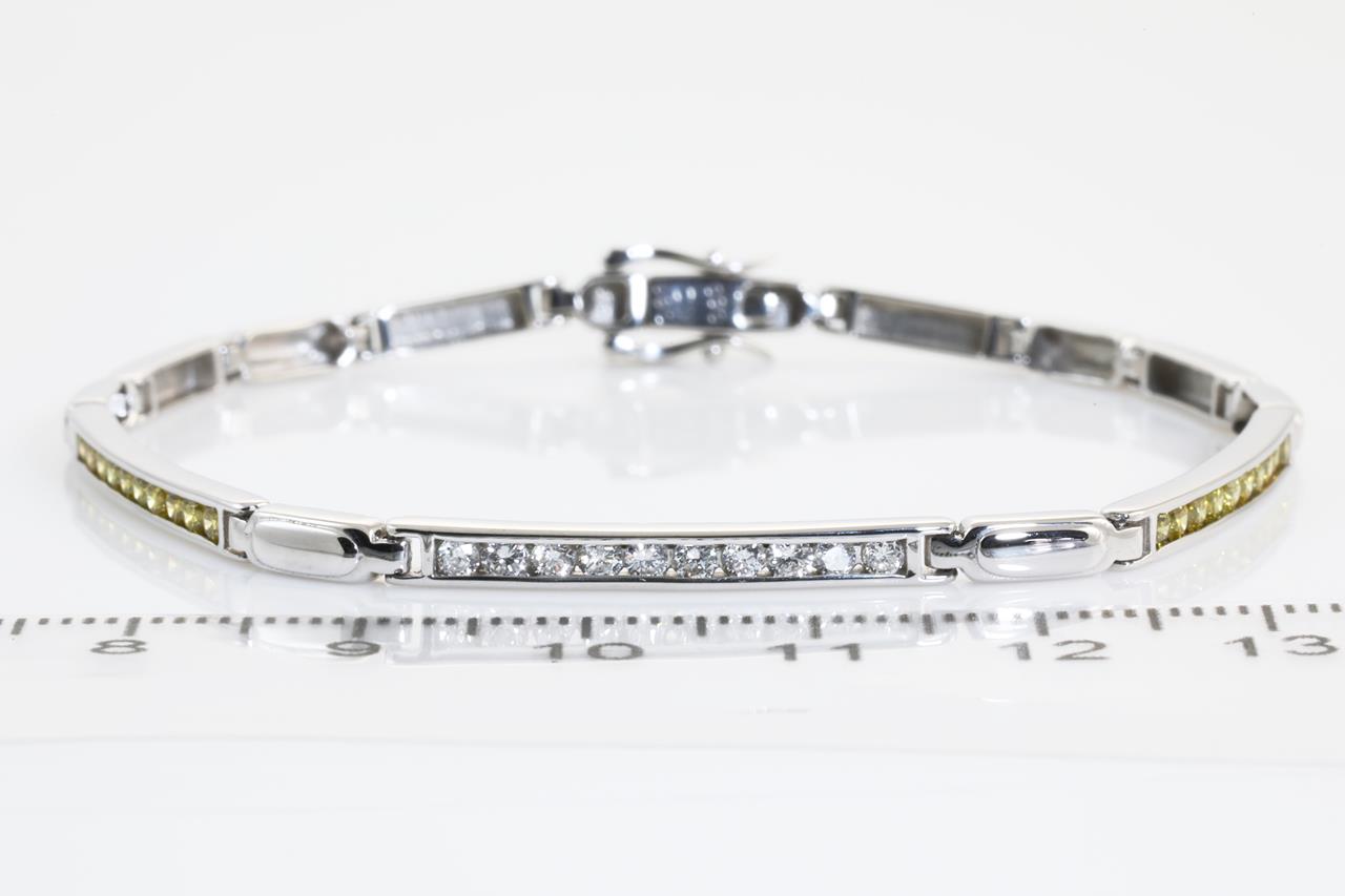 Diamond bracelet with round yellow Diamonds totalling 0.68cts & white Diamonds totalling 0.32cts (Estimated grading: H Si). 18ct white gold. Length: 18cm. Weight: 9.1g. (Pre-owned)