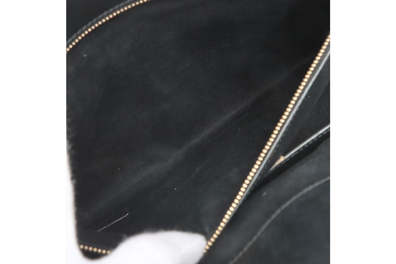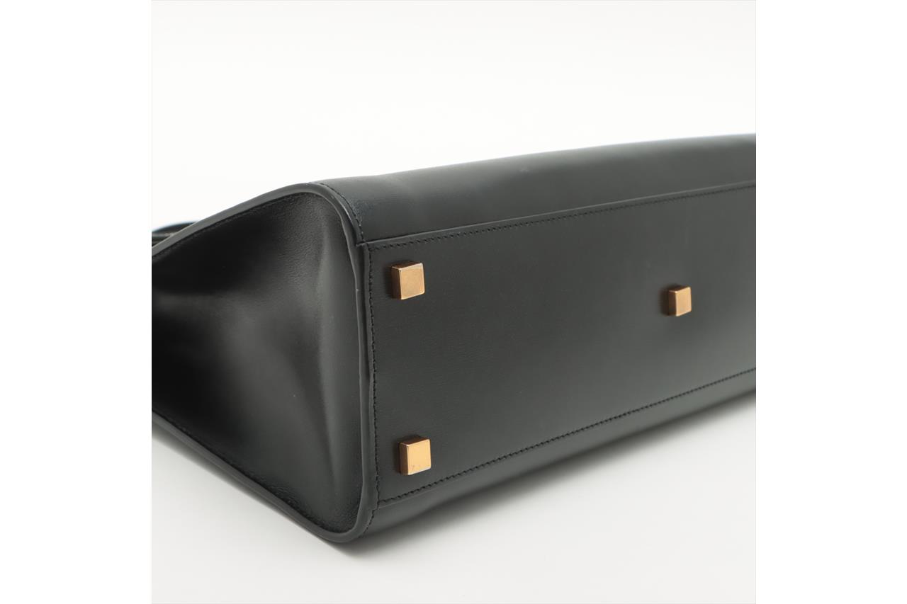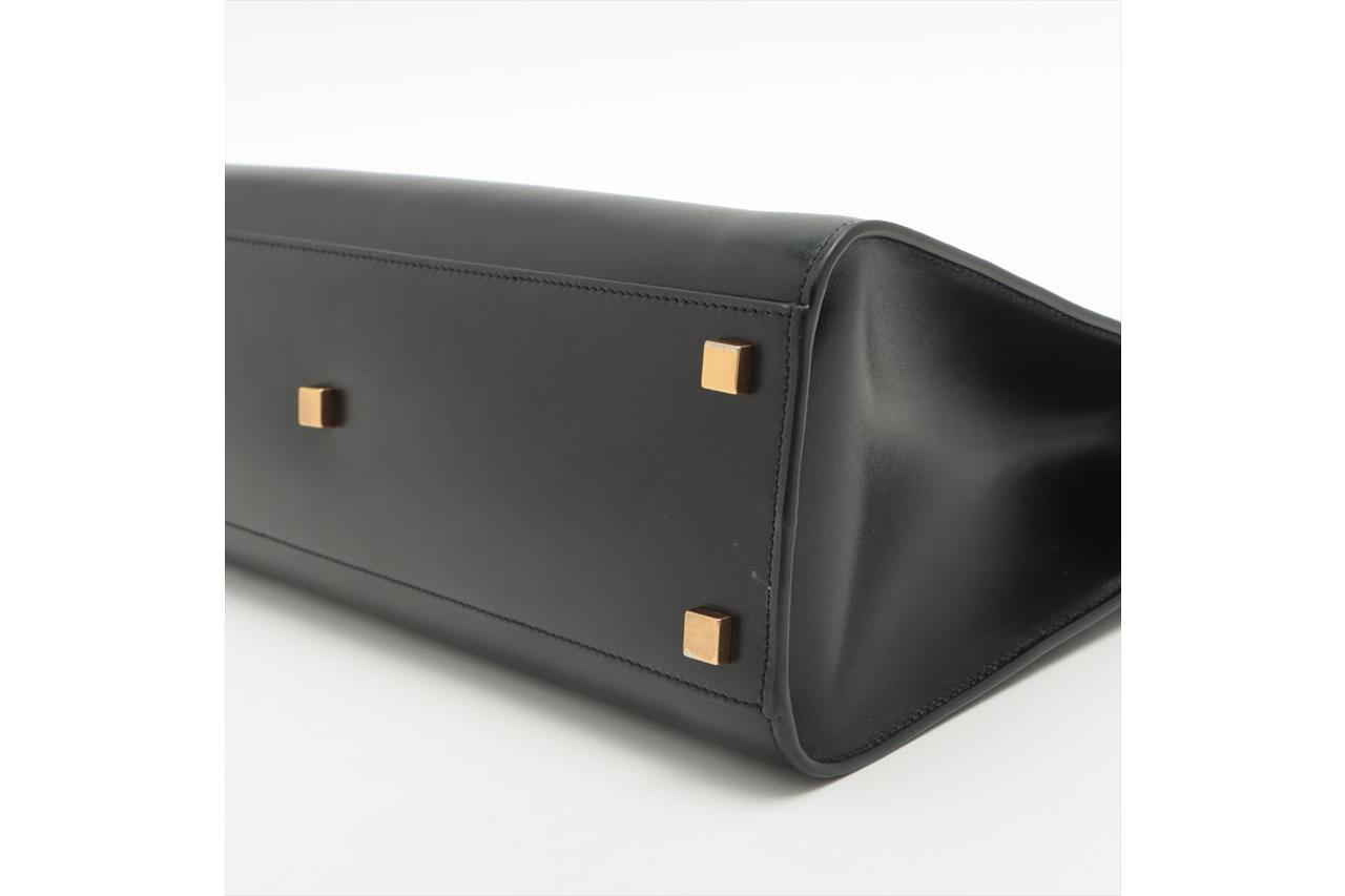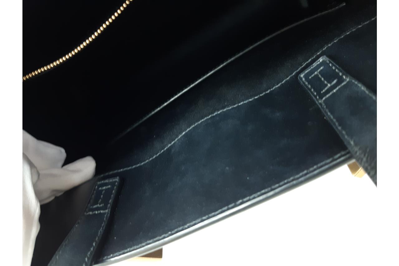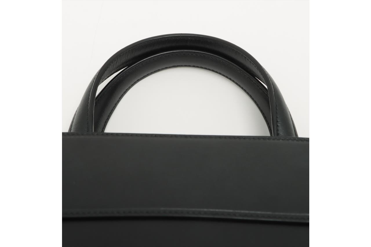 Yves Saint Laurent Manhattan small shopping bag in black calfskin leather. Featuring leather handles, gold-toned hardware, logo engraved magnetic clip buckle and compression tabs closure on front. The opens to black fabric lined interior with flat pockets. Approximate dimensions: 32cm(L) x 24cm(H) 11.5cm(D), 10cm handle drop and 48cm removable strap drop. With Entrupy Certificate of Authenticity. (Pre-owned)