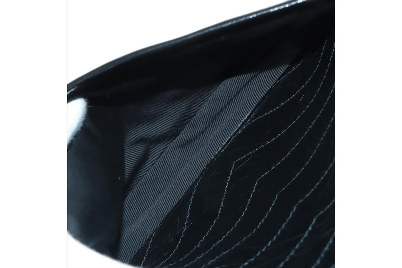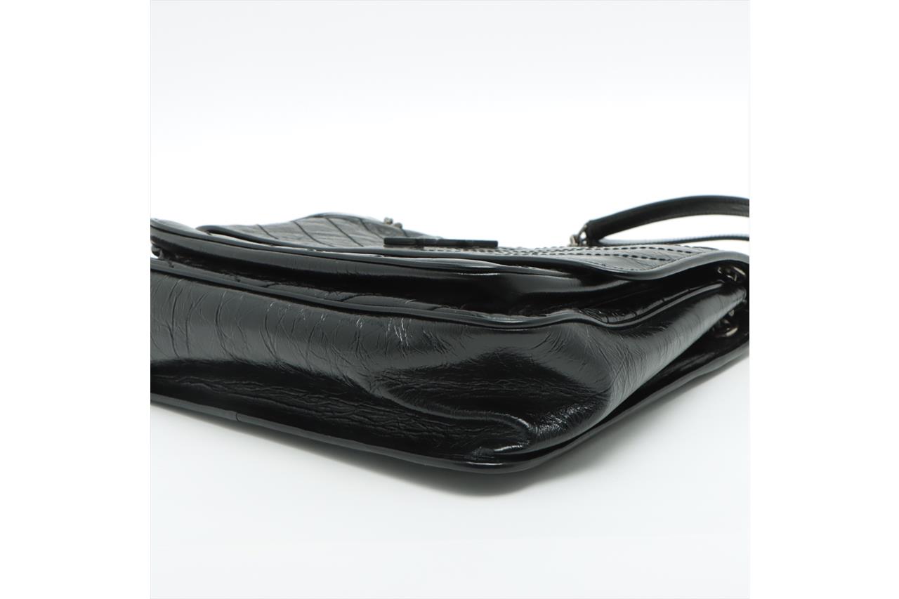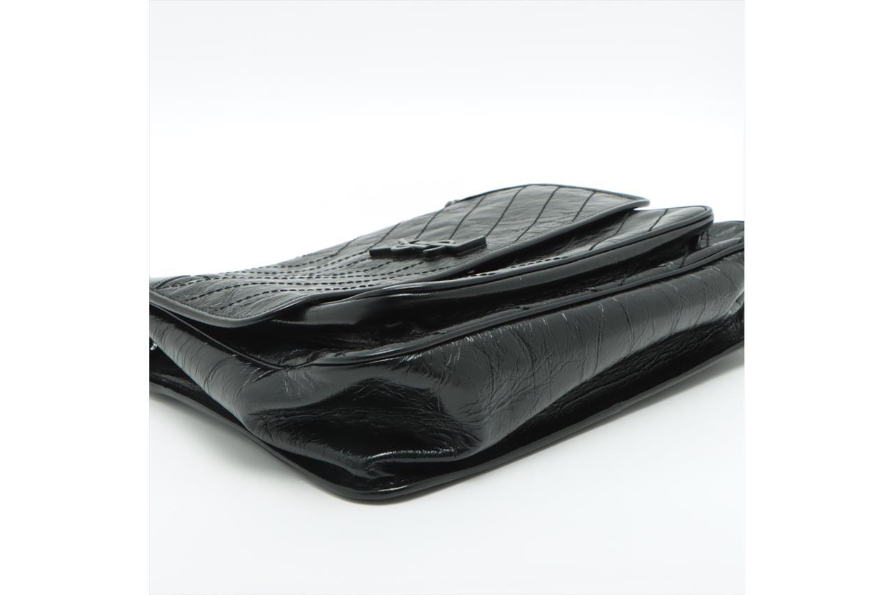 Yves Saint Laurent Niki large chain bag in crinkly black calfskin leather. Featuring chevron quilting, metal-tone hardware, two external pockets under flap and at rear, front flap with YSL logo and magnetic closure. It opens to fabric lining interior with zipped and patch pockets. Approximate dimensions: 32cm(L) x 24.5cm(H) x 8.5cm(D) and 29cm double chain drop. Accompanied by YSL info booklets and dust bag. With Entrupy Certificate of Authenticity. (Pre-owned)