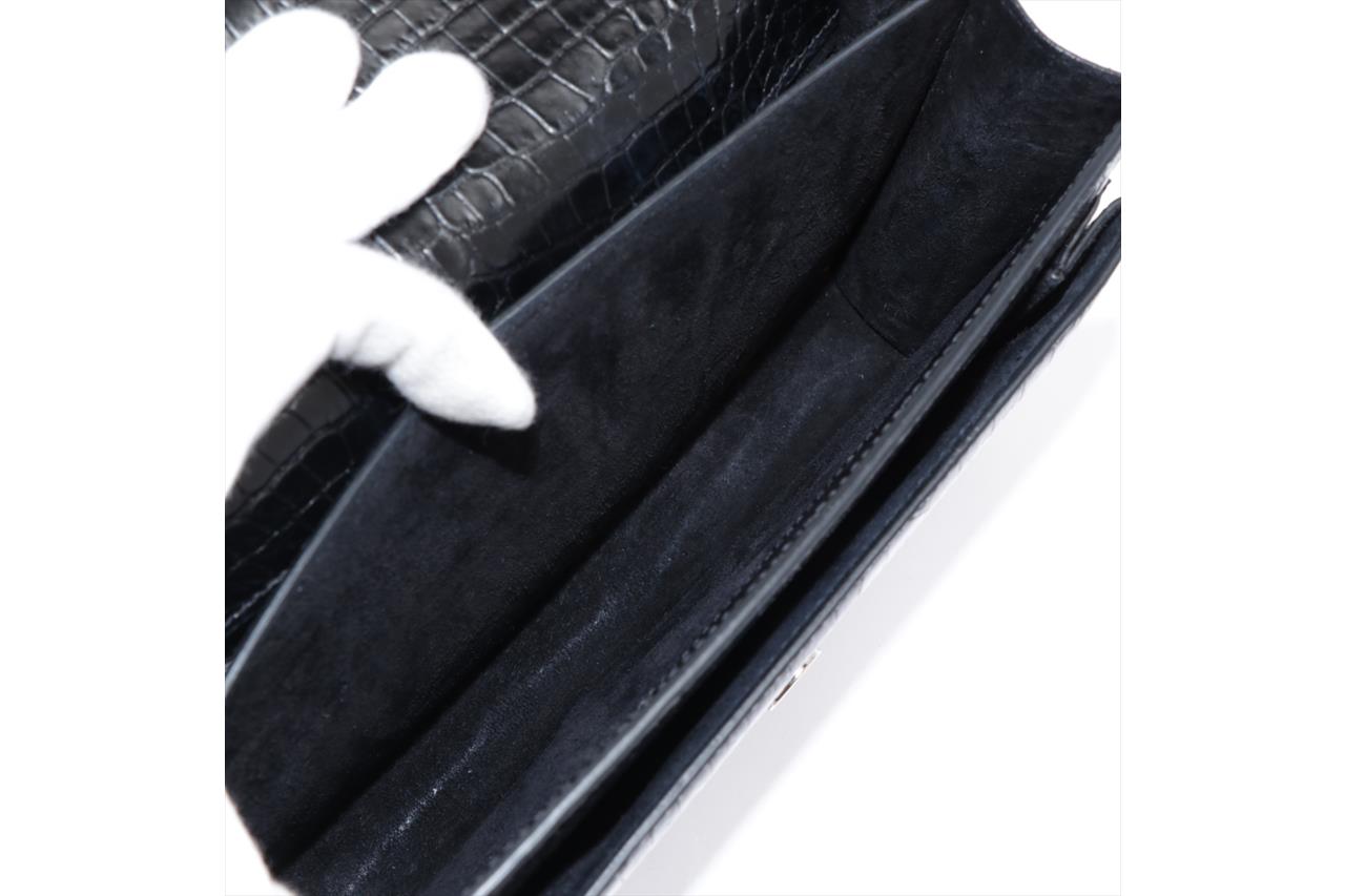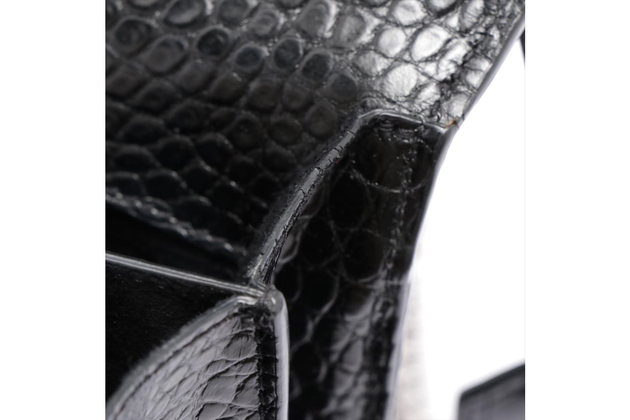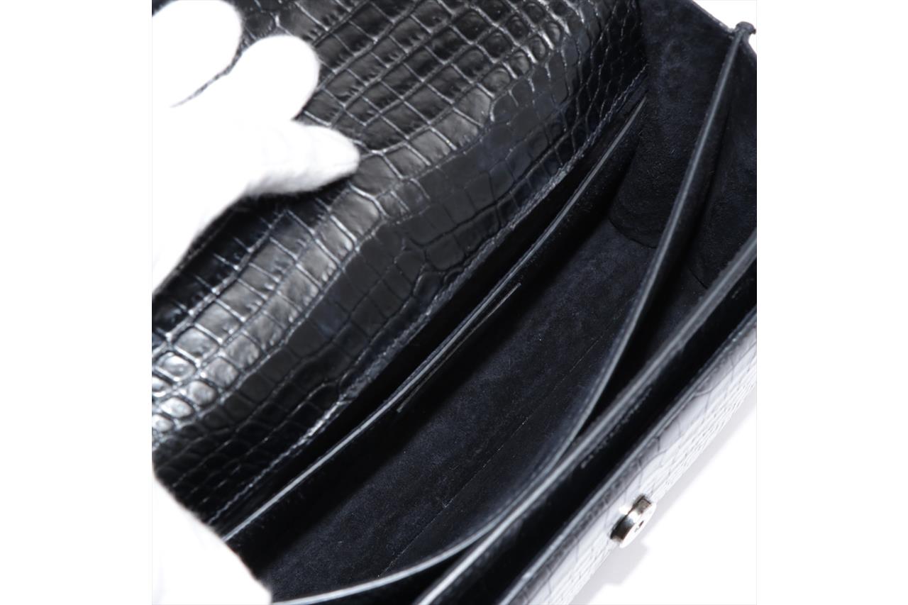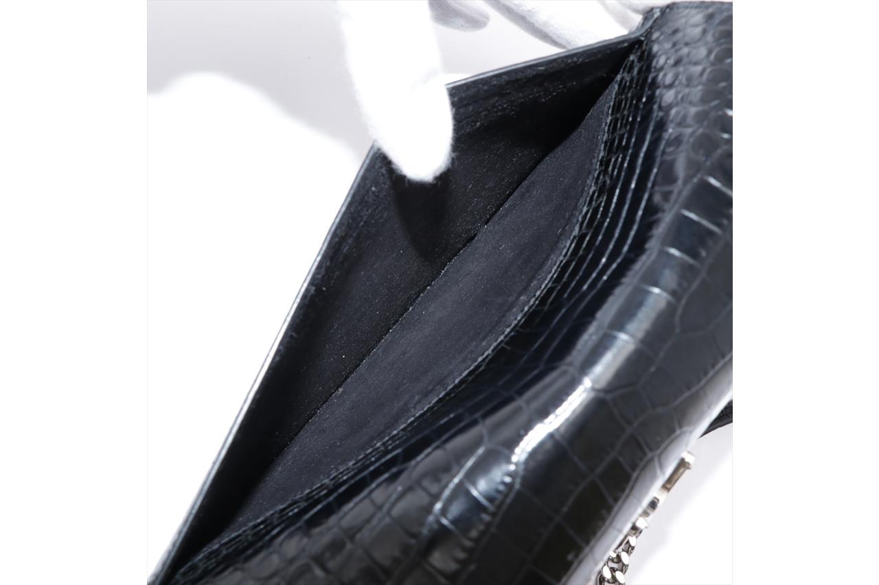 Yves Saint Laurent Sunset Medium Monogram Bag. Black, mock croc, embossed calfskin leather. Silver-tone hardware. Approximate dimensions: 22cm (L) x 16cm (H) x 8cm (D) and 51cm shoulder strap. Made in Italy. With YSL dust bag and Entrupy Certificate of Authenticity. (Pre-owned)
