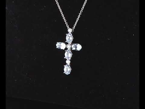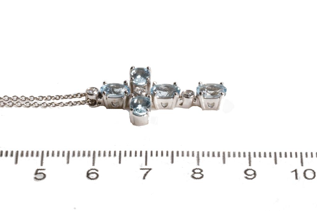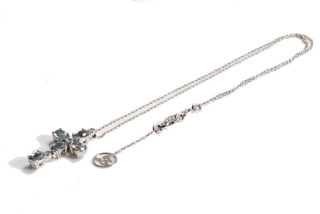 Zoccai Aquamarine and Diamond cross pendant with oval shape Aquamarine totalling approximately 2.50cts and 3 round Diamonds totalling approximately 0.08cts. 18ct white gold with 18ct white gold 42cm Zoccai chain. Weight: 6.1g. (Pre-owned)